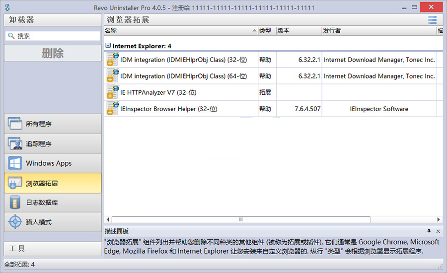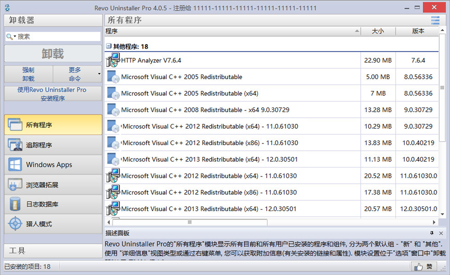 Revo Uninstaller 憑借其先進和快速的算法,徹底分析和掃描程序在系統和注冊表中的所有文件和鍵值,將程序徹底完全的移除,不會在系統中留下軟件的任何殘留!Revo Uninstaller Pro有一個非常強大的功能,稱為強制卸載。