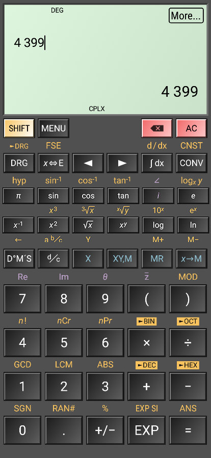 HiPER Calc Pro是HiPER Scientific Calculator的高級版本。計算器最多有100位有效數字和9位指數。它檢測重復的小數,數字也可以作為分數輸入或轉換為分數。您可以以自然的方式編寫表達式并觀察計算。結果顯示為數字,簡化表達式等。