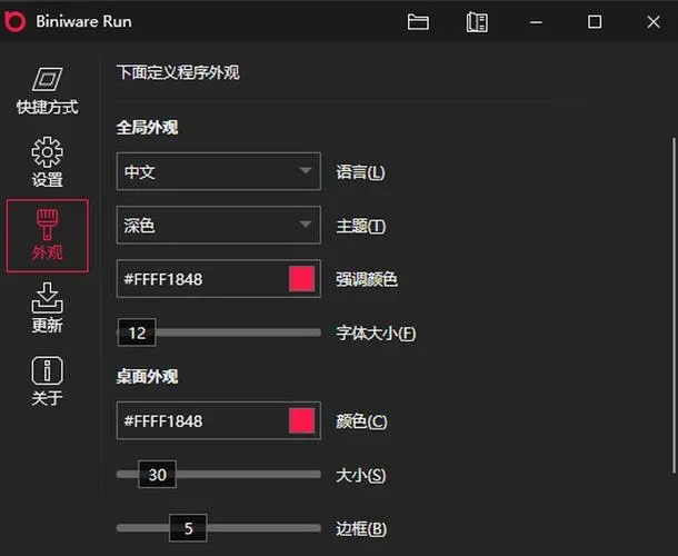 Biniware Run能夠為用戶節省很多麻煩,通過該軟件可以快速地打開所需的應用程序,包括文件、網站等等,軟件是免費的,操作非常簡單,用戶只需要將想要快速打開的程序工具拖放到軟件中即可添加菜單項,不會占用桌面的圖標,支持對參數進行自定義設置。