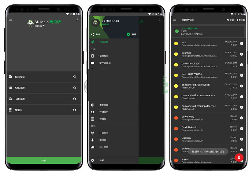 SD女傭是一款專業(yè)的手機(jī)垃圾清理軟件,由于運(yùn)行在超級(jí)權(quán)限之上,所以能夠?qū)ο到y(tǒng)垃圾進(jìn)行清理,非常給力。本版本為修改高級(jí)版,解鎖全部功能!