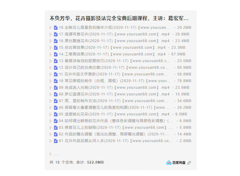 不負芳華,花卉攝影技法完全寶典后期課程,主講葛宏軍老師資源簡介