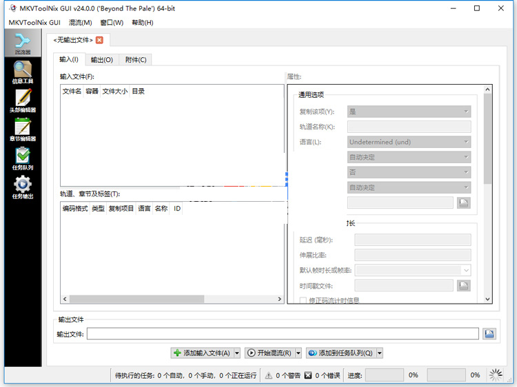 可創建章節并定義屬性,如開始和結束時間、標志、段和段版本 UID、以及章節名稱、語言和國家??膳渲脴撕炍募娜衷O置、創建 WebM 兼容文件、分割模式、文件鏈接等。值得考慮的一個重要方面是 MKVToolnix 提供了對批處理作業的支持,這意味著當執行耗時任務時您可將工作站配置為無人值守。您可檢查當前的命令行并將其復制到剪貼板或保存到文件中以便在將來的項目中使用,管理隊列作業,添加命令行選項,從外部文件加載章節,編輯頁眉以及將項目另存為 .mka、.mkv 或 .mk3d 格式的文件。