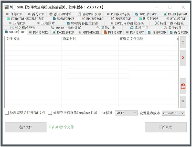 坤_Tools是一款功能強(qiáng)大的文檔編輯工具,它提供了多種實(shí)用的功能,包括Word轉(zhuǎn)PDF、PDF轉(zhuǎn)Word、替換內(nèi)容、轉(zhuǎn)換圖片、合并圖等等。這個(gè)工具的設(shè)計(jì)目的是通過(guò)一個(gè)軟件解決多個(gè)場(chǎng)景的問(wèn)題。這個(gè)軟件完全離線使用,并且完全免費(fèi)。