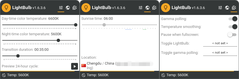 LightBulb是一款電腦屏幕色溫調節軟件,在github上開源,與知名的f.lux是同一類軟件,可以調節電腦顯示器屏幕的色溫,通過調節,可以過濾藍光,減少屏幕的藍光輸出,達到護眼效果,此外,還可以根據時間自動調節顯示器屏幕顏色,讓屏幕始終處于護眼狀態,適合長時間用電腦的用戶使用。