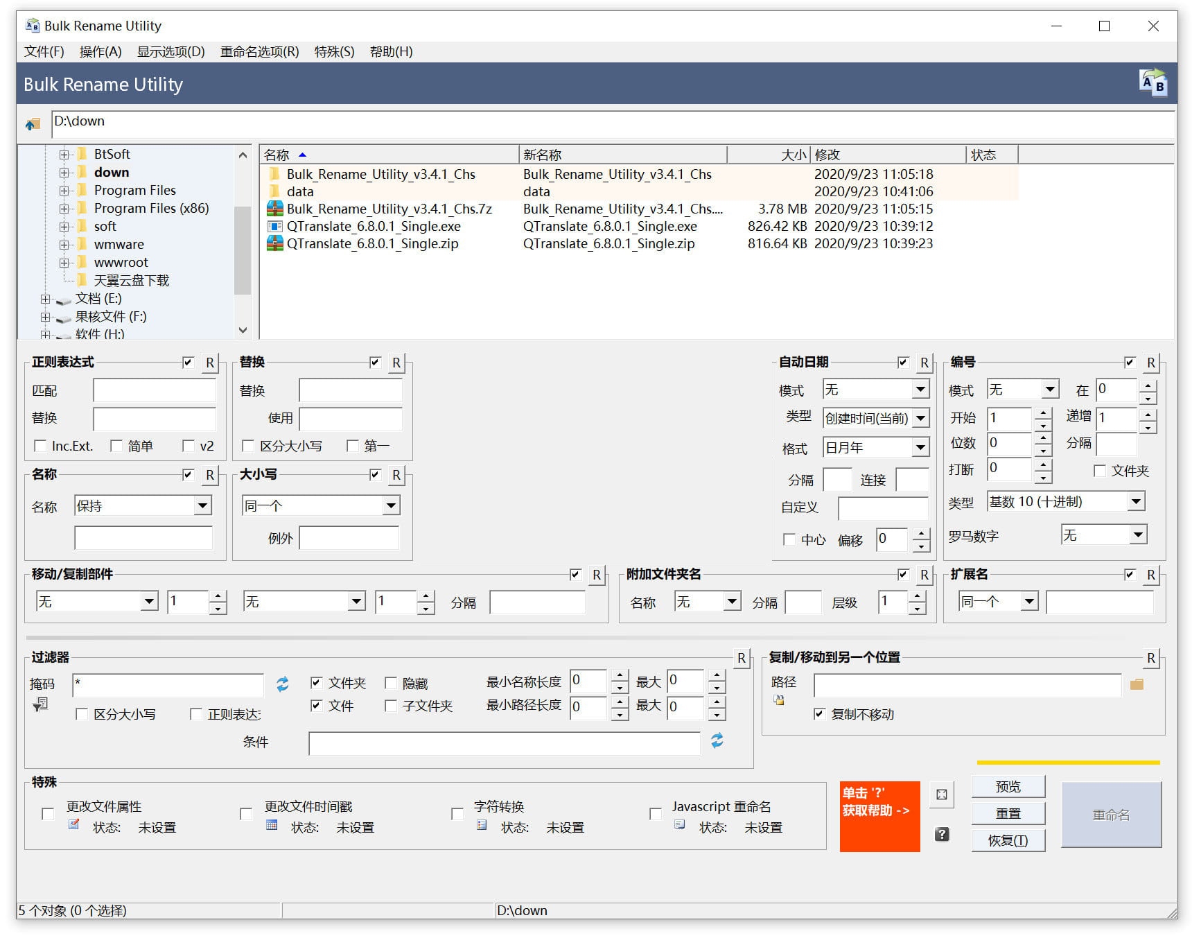 Bulk Rename utility(文件重命名軟件)是一款簡便實用的批量文件重命名工具。怎么快速多個文件改名?Bulk Rename utility(文件重命名軟件)輕松幫助用戶批量修改文件名。該軟件具有靈活規則的自動編號文件,而且還能夠根據多個靈活的標準快速重命名多個文件。