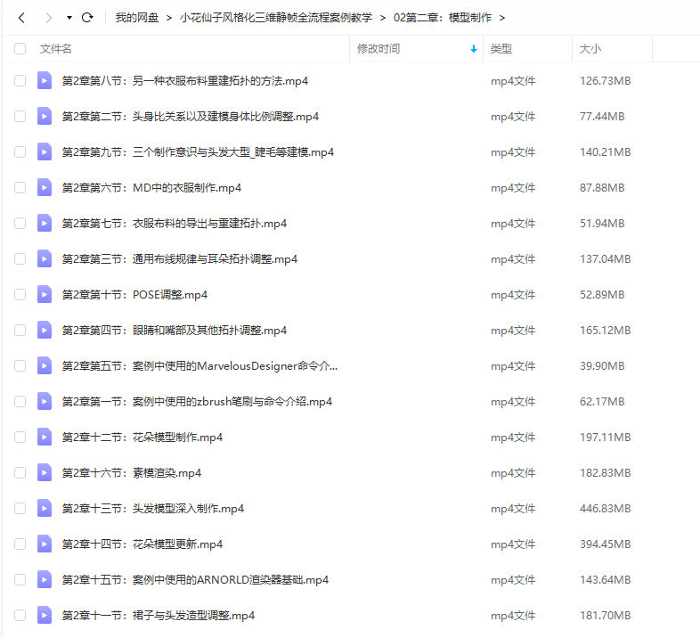 小花仙子風格化三維靜幀全流程案例教學zbrush課程【畫質高清有素材】資源簡介