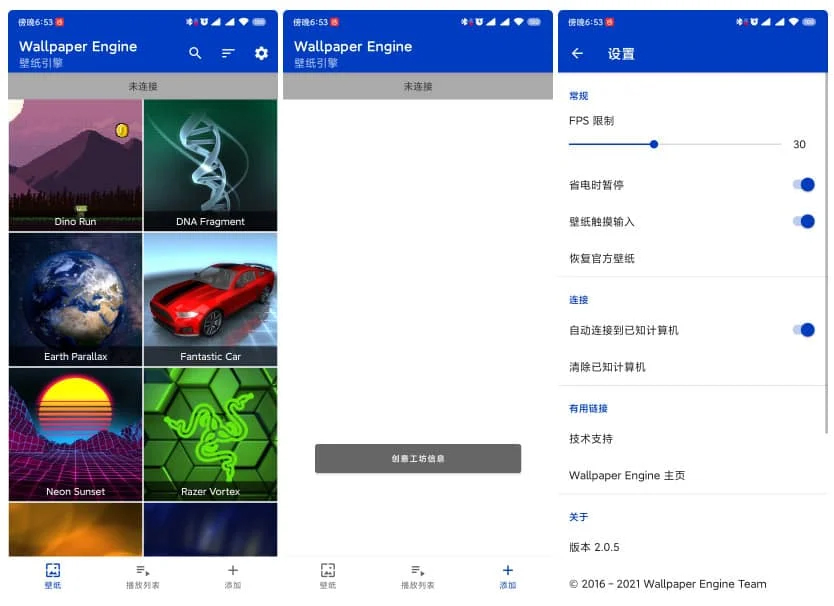 連接到 Windows 上的 Wallpaper Engine,以將桌面庫傳輸到手機上。